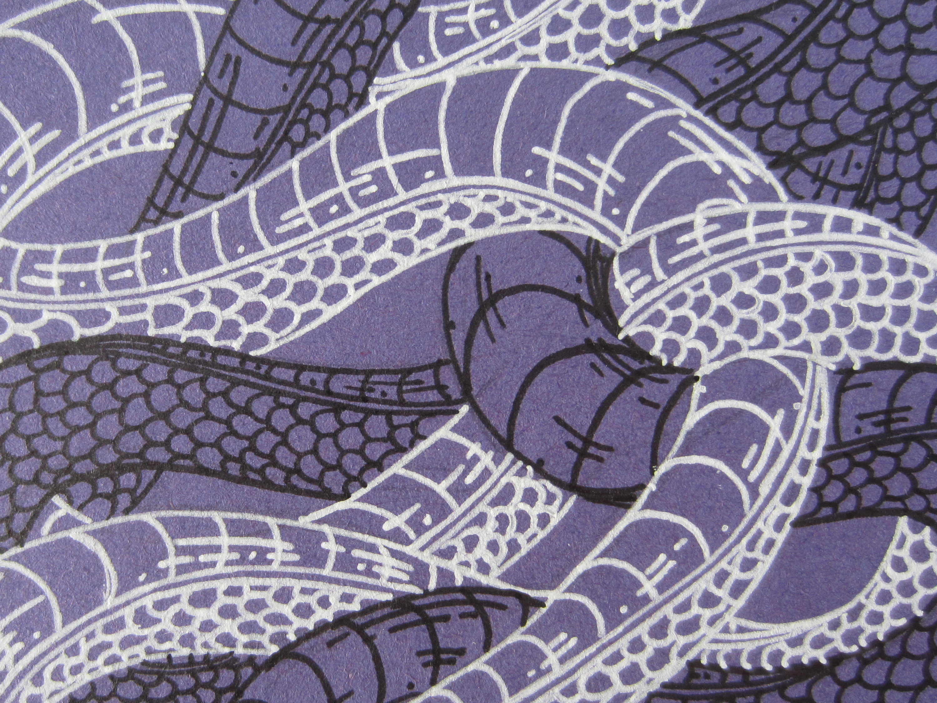 A page of snakes a day for October, various pens on various bits of scrap paper.